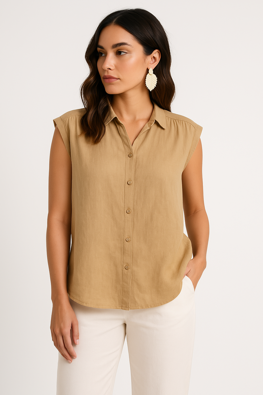 Ladies Blouse Sleeveless – Linen Cotton – Relaxed Fit – Button Closure Casual